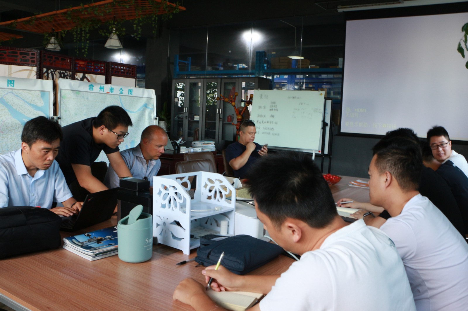 2018年8月23日上午,奥地利著名砂轮品牌Molemab派遣其应用工程师Fabio De Pretto先生(图1 左三)来到我司,并在会议室对我司在司销售进行了全方位的培训。